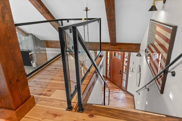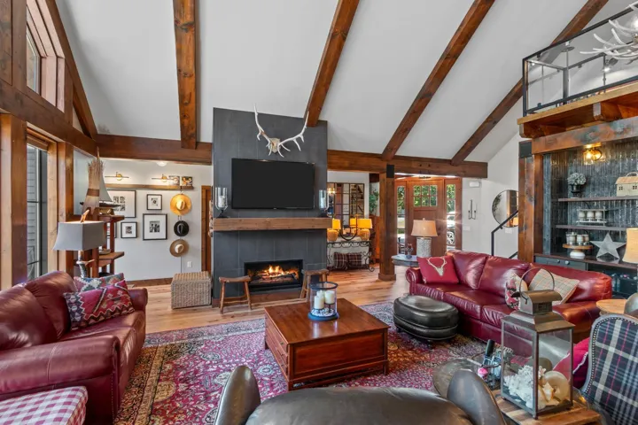 Lake Camelot Lake View Home! This AMAZING lake country design is a strikingly beautiful mix of contemporary & rustic finishes, with the finest of amenities and tasteful touches; the northwoods ambience is unreal! Great Room w/ a wall of lake-facing windows & massive wooden beams, gas fireplace, wood flooring (throughout), spectacular entertainment center w/ wine fridge; Amish kitchen w/ huge island, breakfast bar, beautiful cabinetry, quartz tops, GE Monogram appliances, tiled walls, adjacent dining area; master suite w/ beamed ceiling, wood accent walls, electric FP, & bath w/tile shower and walls; loft; 2nd level 3rd bedroom, bunk room & full bath; rustic 16×16 lakeside screen porch; stamped concrete patio; custom paver firepit; irrigated yard; and much more! Panoramic View! In Rome!