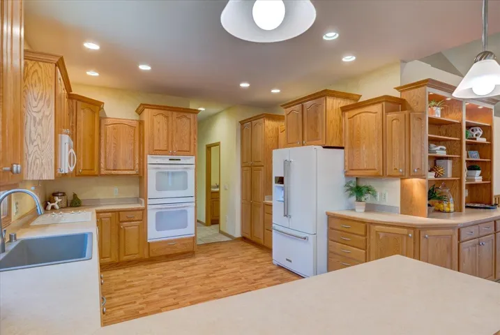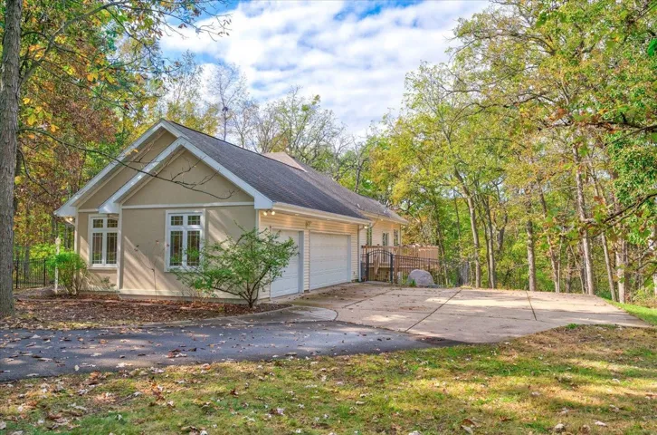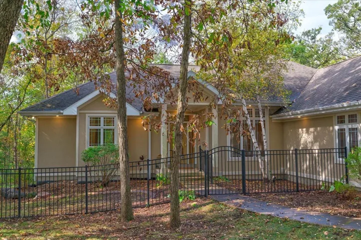 Quality built, private serene verdant 2.54 acre setting. Dream home + piece of wooded paradise awaits your touches! Main flr owners suite, spa bath w/tub + separate shower rm, w/ hall closet + walk-in closet. Large open Cooks kitchen, dbl ovens, spacious dining/sitting rm. Entertain + watch wildlife on the deck or in dreamy vaulted great rm w/ serving bar/buffet + gorgeous 3-sided gas FP. Main floor office, powder rm, handy mudroom + main level laundry. 3 large BR in LL, huge walk-out family rm, cozy wood FP and kitchenette w/ wet bar sink, full tub/shower bath + powder rm in LL. Ample storage/craft space, LL comfy in-floor radiant heat, newer water tank. Storage building for hobby cars, recreation vehicles/machinery, boat, golf practice and rumpus! Middleton school dist across Timber Ln.