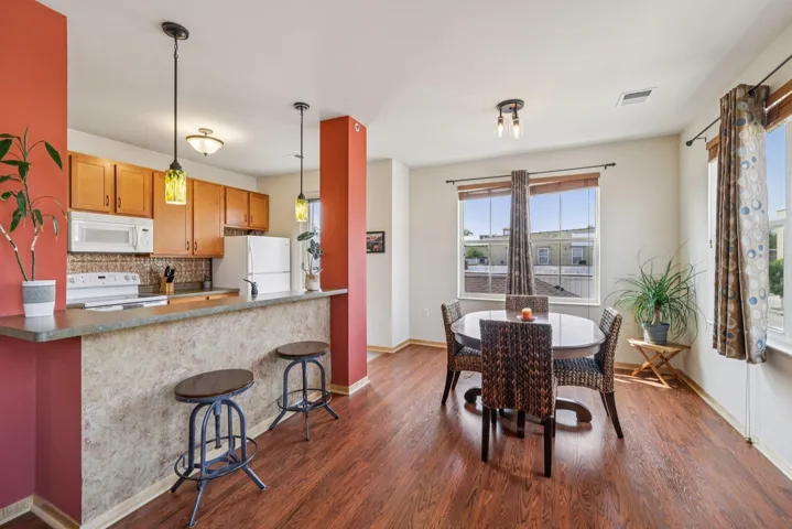 Welcome to your dream condo in the heart of historic downtown Edgerton! This bright corner end unit perfectly blends charm, space, and convenience. Enjoy being just steps from everything—pool, coffee shop, gym, schools, library, fishing pond, bike trail, restaurants, and live music venues! Inside, you’ll find a spacious open layout with high ceilings, abundant natural light, and a split-bedroom design for added privacy. The 2-bedroom, 2-bath condo features a private balcony,. The primary suite includes a custom walk-in closet and an ensuite bath with double sinks and a walk-in shower. Recent updates new bathroom flooring and a refrigerator. You’ll also appreciate the in-unit laundry and two included parking stalls. Corner, jumbo unit. Located just a short commute to Madison or Janesville.
