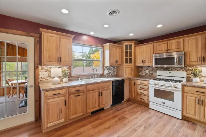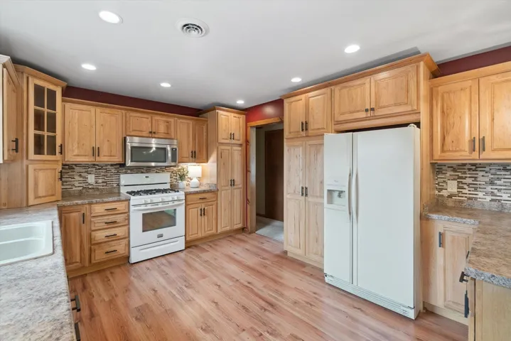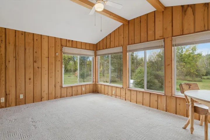 Set on a beautiful 1-acre lot within walking distance to schools, this spacious 4-bedroom, 1.5-bath home offers over 2,600 sq. ft. of comfortable living space. The main level features bright rooms, a spacious updated kitchen and bath with a tile walk-in shower and a large porch overlooking the peaceful, tree-lined backyard with no rear neighbors. A huge 3+ car garage plus two connected workshop areas PLUS an additional upper & lower barn provides plenty of space for projects and storage. The finished basement with fun 70s décor, a cozy fireplace, and its own walkout porch adds the perfect spot to relax or entertain year-round.