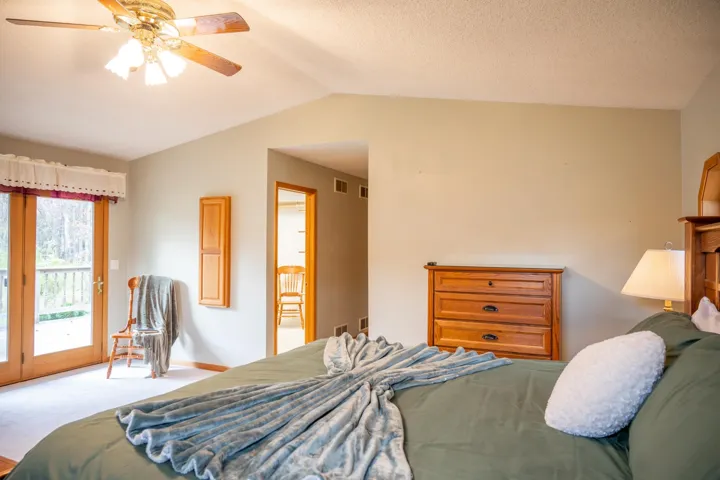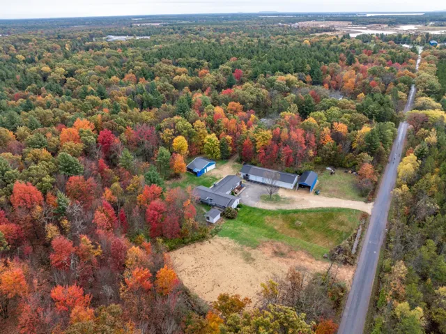 Escape to this rural retreat just 2 miles from Castle Rock Lake! Set on 5 wooded acres, this property offers two primary suites, one with a private deck and a 3-season room. The spacious layout includes an office with a half bath, a bar and rec room with a pellet stove, and a large living room with a cozy fireplace. Ideal for hobbyists or home-based business with a heated 4-car garage featuring two offices and a bath, plus a 28×30 building and 39×19 open-sided structure for extra storage. Located on ATV and snowmobile trails, it’s perfect for outdoor enthusiasts to hunt, explore, or relax while enjoying the abundant wildlife. *The hot tub in the 3-season room was winterized and not used for several years.*