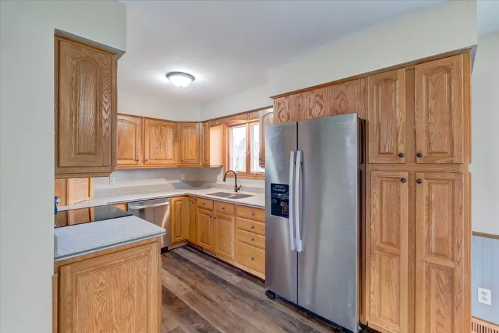 Charming 3-Bedroom Ranch on a Peaceful Cul-de-Sac. Looking to downsize or purchase your first home? This well-maintained ranch is the perfect fit! Set on a generous lot w/mature trees, this home offers comfort, privacy, & space you’ve been searching for. Inside, you’ll find a spacious living room filled w/natural light from the bow window, a kitchen w/solid-surface counters & plenty of cabinet space, a dining area that opens right onto the deck—perfect for relaxing or entertaining. The fenced-in backyard features a fire pit, garden space, & a storage shed, giving you room for both fun & function. The primary suite includes a walk-in closet & a private bath with a shower & linen closet. A single-car garage adds convenience, & the lower level is ready to be finished into more living space.