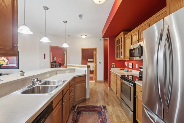 STUNNING RANCH END-UNIT CONDO w/Lots of Natural Light!! Garden Style Condo Featuring 2 Bedrooms, 2 Baths, 1st Floor Laundry + 1 Underground Heated Parking Space! Kitchen w/Breakfast Bar, Newer Stainless Steel Appliances, Pantry + Dinette Area that Opens to the Great Room w/Cathedral Ceilings, Gas Fireplace + Built-in Cabinets! Primary Suite w/Walk-in Closet + Private Full Bath w/Walk-in Shower! The 2nd Bedroom Features a Huge Walk-in Closet or Office! Elevator in Building! New Central Air-2025! Newer Water Heater! New Carpet-2024! Enjoy your morning coffee on your private balcony! Storage unit #8, underground parking space #23. Average electric, water & sewer bill w/Waunakee Utilities is $124/month. Average gas bill w/MGE is $41/month.