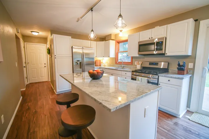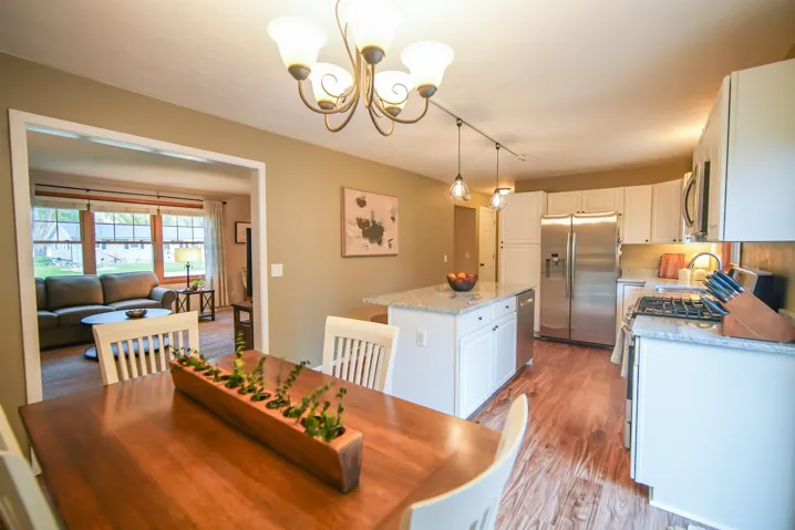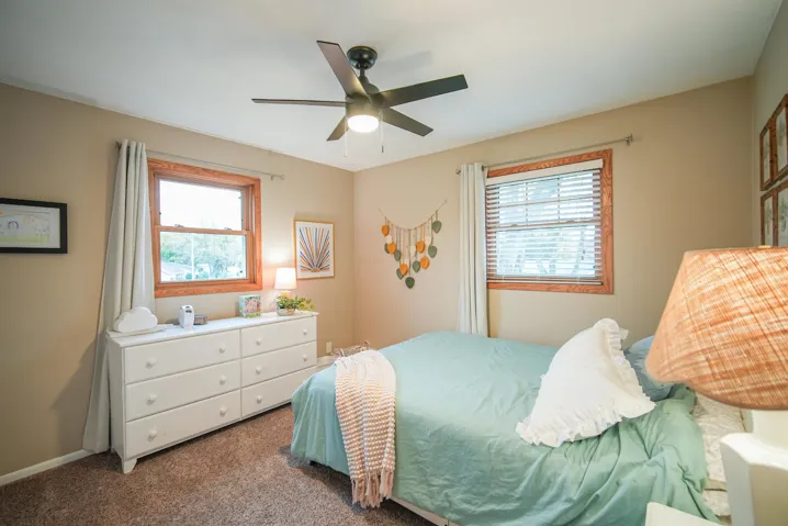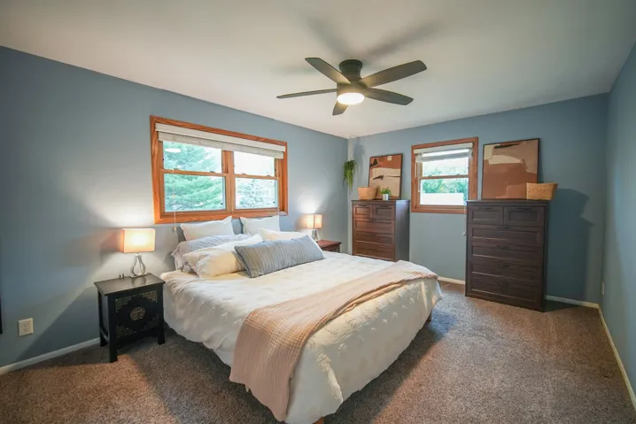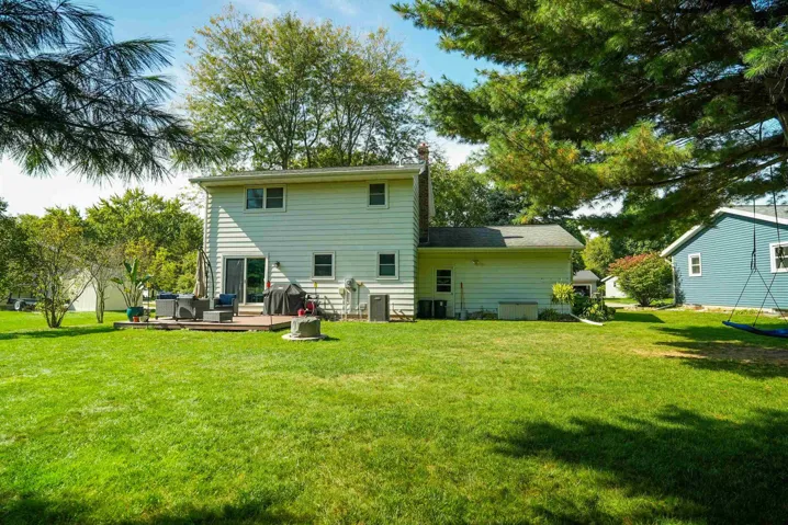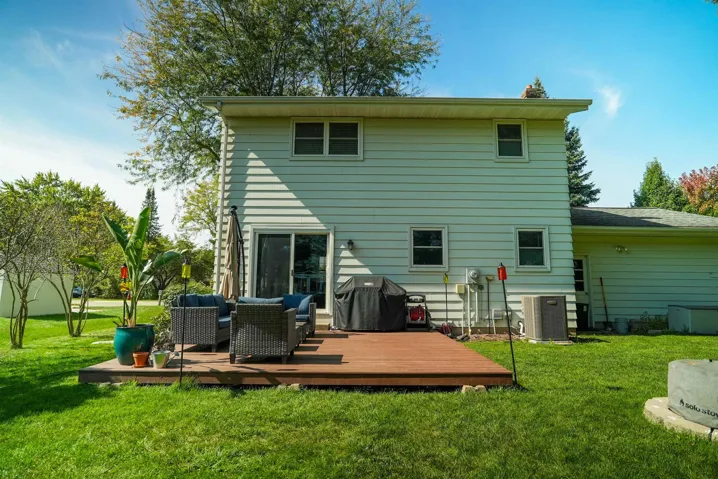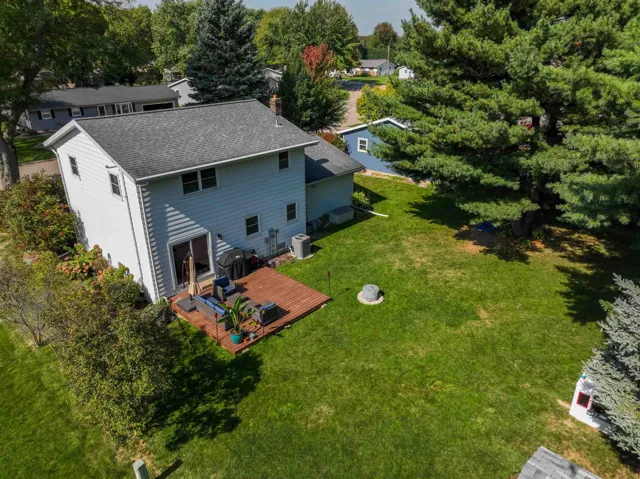 Welcome to this two-story Colonial nestled in a quiet, wooded neighborhood of Sun Prairie. This home features an updated kitchen & newly tiled bath, along with carpet in the lower level. The warm, inviting interior showcases a spacious living area, & a finished lower level complete with a cozy family room & ample storage space. Thoughtful updates continue throughout, making this home truly move-in ready. Outside, enjoy a private, tree-lined backyard with a lovely deck & patio, perfect for relaxing or entertaining. The property also includes a convenient storage building, paved driveway, & an attached two-car garage with a quiet-close door. The front door offers a retractable screen. Located close to parks, schools, shopping, & dining, this home provides a blend of privacy & accessibility.