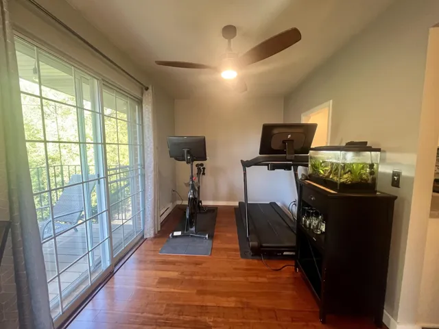 Open house 1today 10/24, 4:00-6:00. Professional photos coming Monday. Quiet, secluded location within 10 minutes of UW Hospital and campus. Light-filled second story unit with large primary bedroom and ensuite half bath. Large second bedroom with generous walk in closet. Spacious living room adjoins flexible area which can be used as home office, exercise area or dining. Outdoor deck faces wooded lot and runs full length of unit. 1 car attached garage, extra storage unit, plus storage in communal area. Professional off-site management.