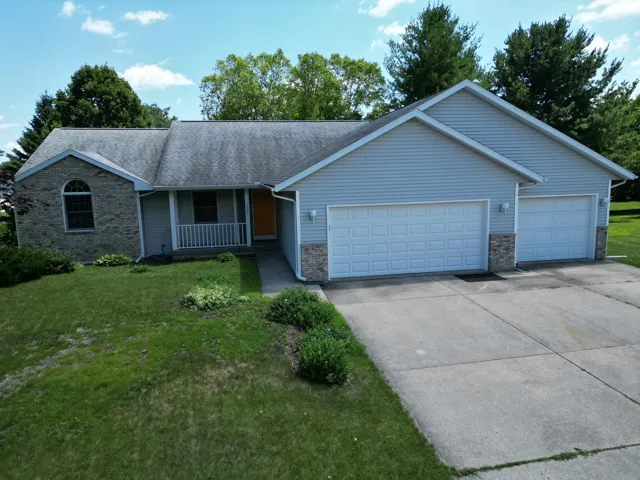 Welcome to this wonderful home in Milton just across the street from Oak Ridge golf course! Home has a beautiful great room with cathedral ceilings, spacious dining area with wood burning fireplace and patio doors that open to a large deck. Primary bedroom has walk in closet, bath with easy walk in shower and grab bars. Lower level is partially finished and has patio doors that open to a beautiful half acre yard. Three car garage with 2 doors and openers. Some recent updates include new furnace, leveling of sidewalk & drive, new concrete patio, some landscaping with tree trimming, shrub removal, extended downspouts. New bathroom floor and some electrical updates. Home is being sold to settle estate. Easy to show and quick occupancy is possible!