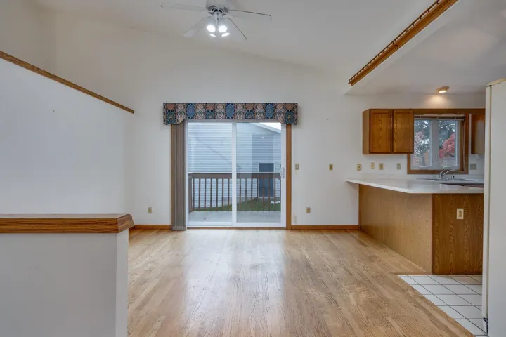Enjoy a sunny, open floor plan with vaulted ceilings, large windows, and a cozy gas fireplace in the living room. Upstairs offers two bedrooms including a primary suite with walk-in-closet and shared bathroom. The exposed lower level includes a family room, full bath, two bedrooms perfect for guests or a home office, secondary access to the garage, and patio doors to the backyard. The two car garage has plenty of storage space with additional storage in the backyard shed. Enjoy a refreshing drink while you relax on the patio or deck.