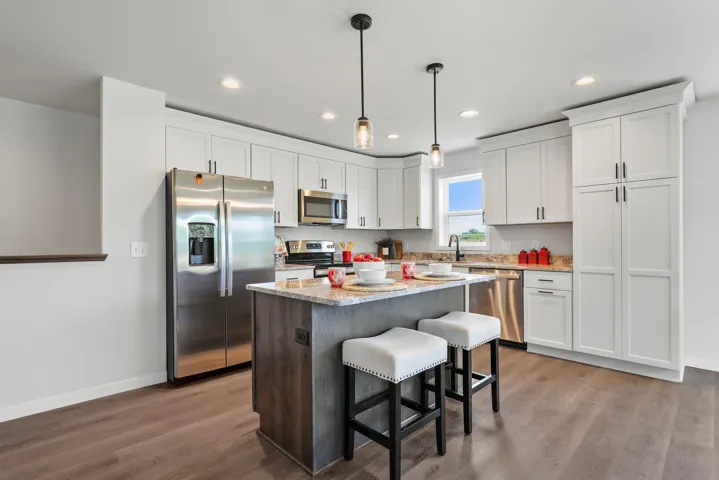 New construction with 2/28/26 estimated completion. Enjoy a brand new beautiful Eldon Home on a one acre, corner homesite! Eligible buyers may qualify for a 4.99% construction loan (9 month term) then 3 years at 4.99%!!! Eldon Homes, Your Hometown Home Builder presents The Rowan -Craftsman at Hawk’s View! This 3 Bedroom, 2 Bath Ranch layout has a split style with an open floor plan on the main level. The Kitchen that offers an abundance of light with plenty of cabinet, and a large island overlooking the Great Room! Kitchen includes solid surface counter tops and stainless GE appliances. The full walk-out exposure offers option to finish lower level with plumbing for a full bath roughed-in and an egress window for a future bedroom. Home includes limited transferable warranty!