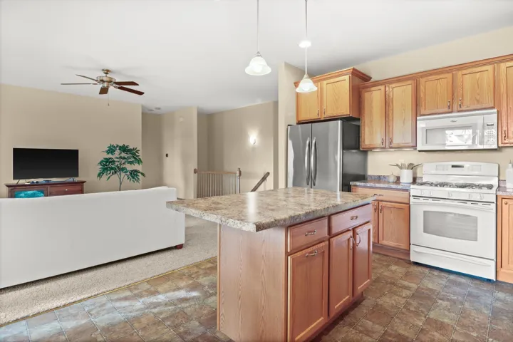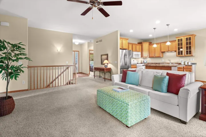Welcome to your new home in the desirable McFarland community! This charming Field Stone condo is part of a zero lot line duplex, offering 2 bedrooms and 2 bathrooms in a convenient ranch-style, main-level layout. Enjoy an open-concept living space and a cozy gas fireplace – perfect for relaxing or entertaining. The bright kitchen features stainless steel appliances, a breakfast bar, and plenty of cabinet space for all your culinary needs. Retreat to your private primary suite with a full bath and walk-in closet, and enjoy the convenience of main-floor laundry. The full, exposed lower level is a blank canvas ready for your personal touch. With an attached 2-car garage, peaceful surroundings, and easy access to parks, shops, and schools, this home truly has it all!