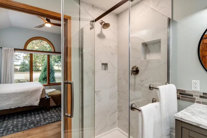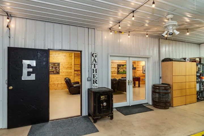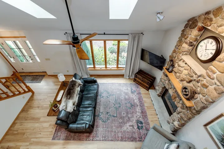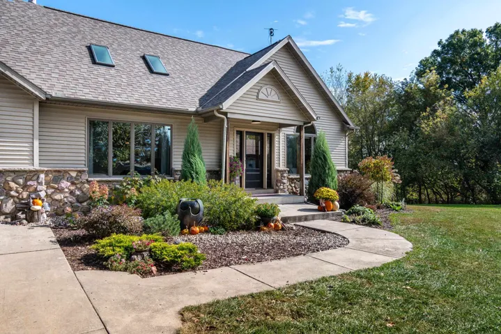Tucked away on 11.52 wooded acres, tree-lined drive leads to a beautiful home featuring renovated kitchen – hand-crafted cabinetry w/ walnut island, accesses wraparound deck overlooking woods & trails, while the renovated main level primary suite offers vaulted ceiling & deck access. Living room w/ soaring ceilings & floor-to-ceiling stone FP. Flexible loft space for work/study/rec area & LL walkout provides areas for entertaining, fitness, relaxation around 2nd fireplace. Exceptional 50×70 outbuilding offers full HVAC, a temp-controlled hunting room, 17×49 finished rec area with bar, gaming, TV & bathroom. Enjoy wooded trails, wildlife, & sunsets by the fire pit. 3rd BR may not have legal egress. SF/dim/acre approx – Buyer’s responsibility to verify. Wood flrs under LVP per Seller. 2 PNs