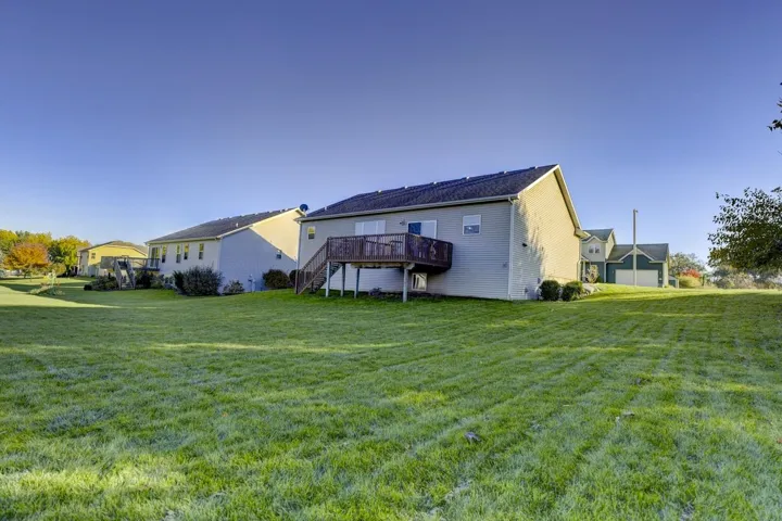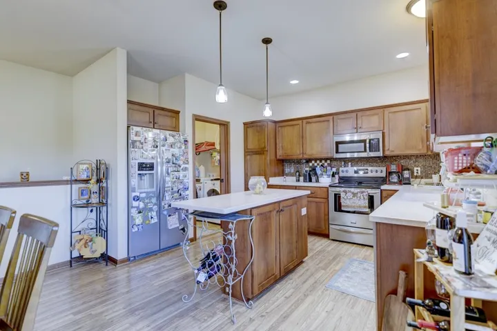 Step inside and fall in love with this beautifully designed home that blends comfort, style, and functionality. The open floor plan flows effortlessly through the Great Room, highlighted by a striking tray ceiling and large windows that fill the space with natural light. The kitchen is a true centerpiece with custom maple cabinetry, tile backsplash, solid-surface countertops, and stainless-steel appliances, ideal for everyday living or entertaining. Enjoy the convenience of main-level laundry and thoughtful design details throughout. The finished lower level adds a spacious rec room, comfortable fourth bedroom, and full bath, perfect for guests, a home office, or a private retreat. Impeccably maintained and move-in ready, this home offers warmth, quality, and modern design.