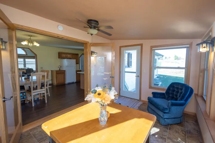 Discover this 3 bedroom ranch-style home nestled at the edge of Belmont. Designed for comfort and accessibility, it features ramped entrances, an open floor plan, and a walk-in bathtub for effortless living. Enjoy sunny days in the bright sunroom off the dining area, and appreciate the convenience of main floor laundry. The lower level offers a private guest suite with its own bath and walk-in closet, plus a stylish bar area perfect for entertaining. Modern mechanicals include an in-floor heat system, natural gas forced air furnace, and central air for year-round comfort. An attached 2-car garage with basement access and a detached 32×32 shed provide plenty of room for vehicles and hobbies. This home blends thoughtful design, modern amenities, and country charm! Take a look today!!!