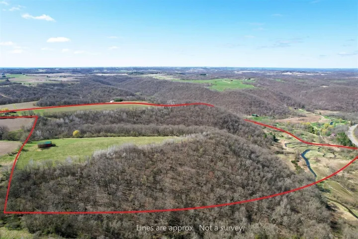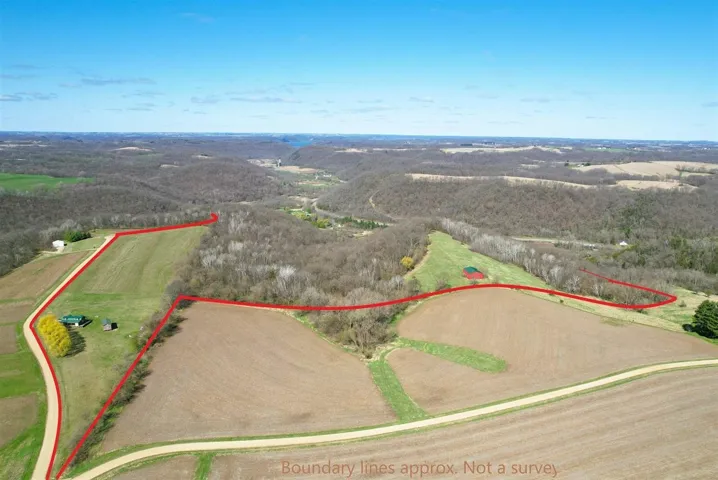Prime hinting land with trout stream & bldg sites! A RARE FIND; 40×60 pole building with electric, a charming cabin with wrap around deck, 2 spacious lofts & barn-style roof, plus a bunkhouse/workshop, all at the end of the quiet lane! This 102± acre contiguous tract has it all-ridge tops, valleys, woods, water features, trout streams, bubbling springs, and tillable land. Enjoy miles of trails, multiple building sites with electric, fiber optic and access from both Scenic View Rd and Campfire Dr. Copper Creek flows through, creating the perfect blend of beauty, privacy, and functionality. Established road through the woods from the ridge top all the way down to the valley. Less acreage avaialable. Driftless Wisconsin prime hunting & trout fishing!