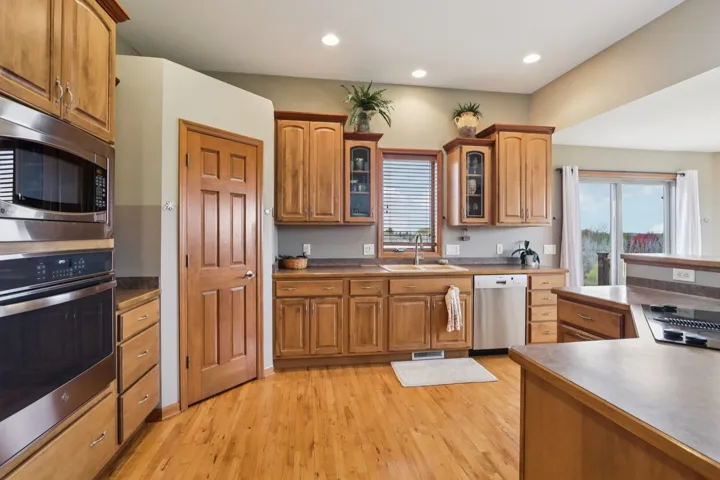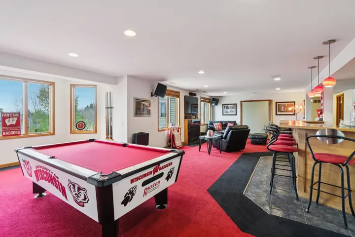 Welcome to your new luxury retreat on 1.39 acres in Bristol. This 4-bed, 3-bath home blends high-end comfort with everyday function. Enjoy a spacious main level with cathedral ceilings, beautiful kitchen, laundry room, and primary suite with private deck and large walk-in closet. The expansive deck overlooks a stunning, built-in spa oasis featuring stamped & dyed concrete, custom fire pit, and dedicated spa equipment building. The finished lower level is the ultimate game-day hangout with bar and Badger-themed rec room. The garage has 10 foot doors and over 1,000 sq ft, perfect to store all your toys! Relax, entertain, and enjoy true Wisconsin living—inside and out!