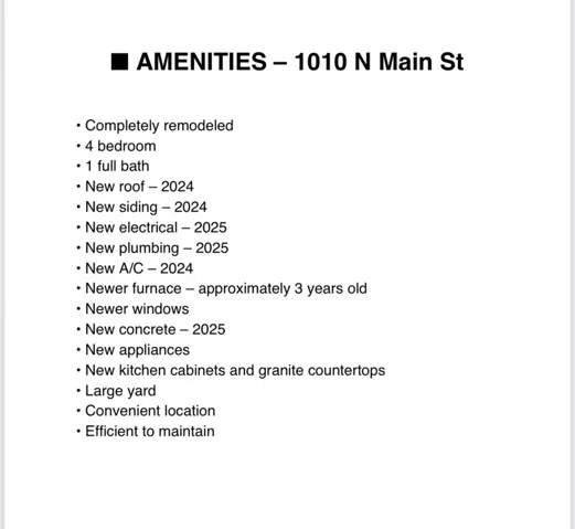 Beautifully remodeled 4 bedroom home-Convenient, efficient, spacious & move-in ready! This cozy home checks all of the boxes! Step inside to find an inviting layout of the kitchen, dining area & living room. Perfect for family time or gatherings. The new kitchen boasts stunning granite countertops, an island & all new stainless-steel appliances-Everything you need for everyday living! Each room is freshly updated, combining comfort & functionality throughout. Outside, enjoy a large yard, ideal for entertaining or relaxing, along with a new concrete driveway, providing plenty of parking & curb appeal. Located in a highly convenient area, you’re within walking distance to stores, schools, a bank, a pharmacy & a gas station. Move in & start enjoying your home today!