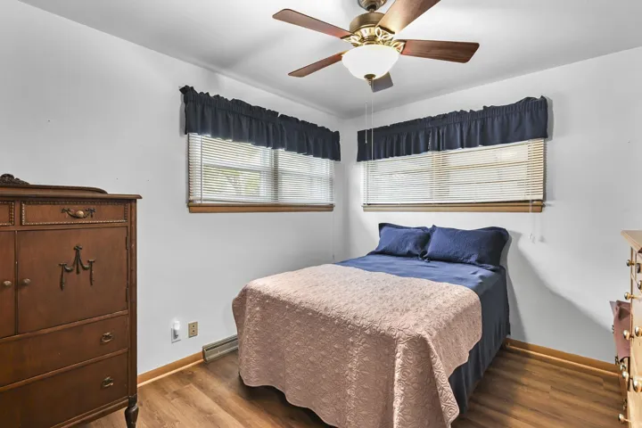 Nestled in a quiet, established neighborhood near schools, parks, and the library in your backyard. This beautifully updated and well-maintained 2 Bedroom/2 Bath ranch offers comfort, convenience, and small-town charm. Enjoy new LVP flooring throughout the home, a bright kitchen and dining area remodeled in 2013, and a modern bathroom with a walk-in shower. Additional features include main-level laundry and an air purification system. Recent updates include new A/C (2023), new water heater (2021), new water softener (2025), and epoxy-coated garage floor (2023). Current owner had the basement fully waterproofed with drain tile around house and added a second sump pump for peace of mind. Situated on a spacious corner lot with room to expand or relax