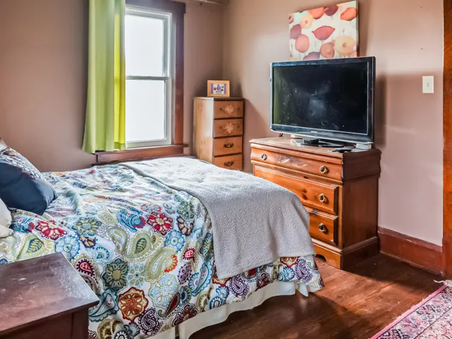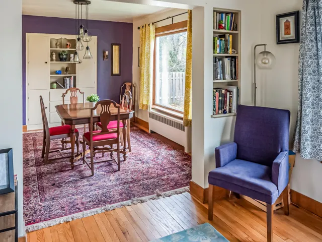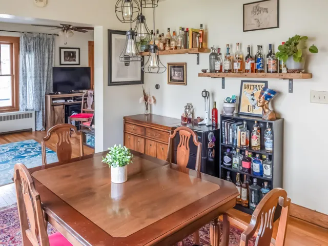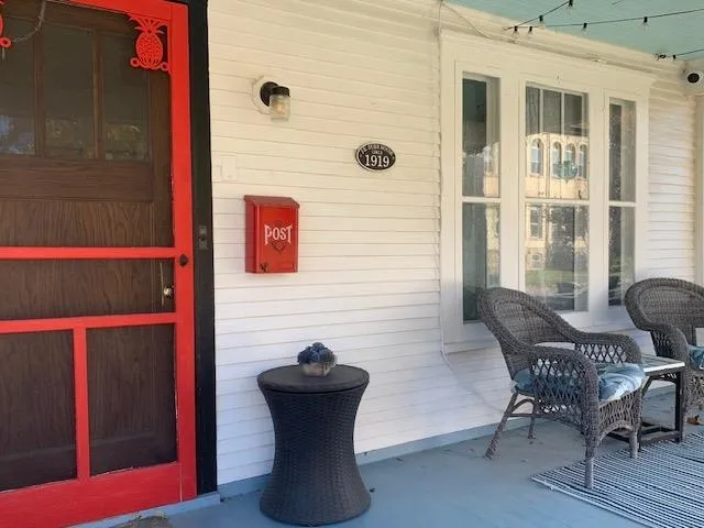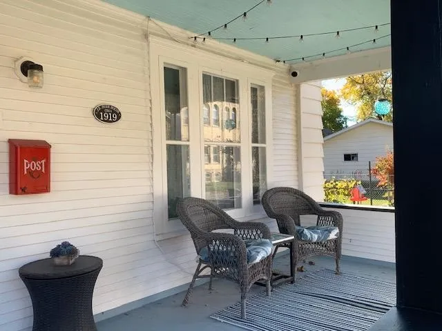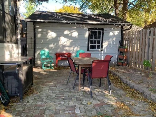 Seriously the cutest home on the block! Charming w/tons of character! Enjoy your fully-fenced yard w/tons of space to roam! Relax on your patio & in your quaint sun porch in back! Huge front porch welcomes guests! Home features original wood floors, wide trim work, arched doorways! Charming living room has built-in book nooks & bright windows! Dining room has custom built-ins & accommodates larger gatherings! Sweet kitchen w/subway tile backsplash & all appliances! Gorgeous wood staircase leads upstairs to beautiful bathroom w/remodeled tile tub surround (2023) & 3 spacious bedrooms! Party in the lower level w/the fun Tiki Hut bar & entertaining area! New roof on house/garage (2023), water softener (2024)! Updated windows & electrical! 2-car garage! Walk to dining, bars & shopping!