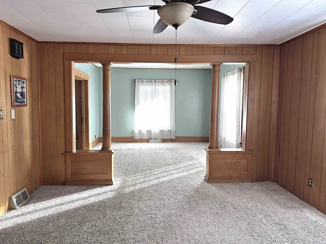 Step into this charming home from the large front porch and be welcomed by a gracious foyer and an open staircase. The main floor boasts natural woodwork, a spacious living room, formal dining room, a generously sized kitchen, a versatile bedroom/den, full bath, and laundry. Take one of two staircases to the upper level, where you will find 3 bedrooms, another full bath, and an office that leads to a huge walk-up attic. Outside, a second covered porch provides a private gathering space overlooking the large back yard. A second 16×24 garage offers extra storage for toys or vehicles. Lovingly cared for, the updates include kitchen, roof, siding, windows, furnace, AC and water softener. Great small-town location, yet convenient to the cities and all the amenities that they offer.