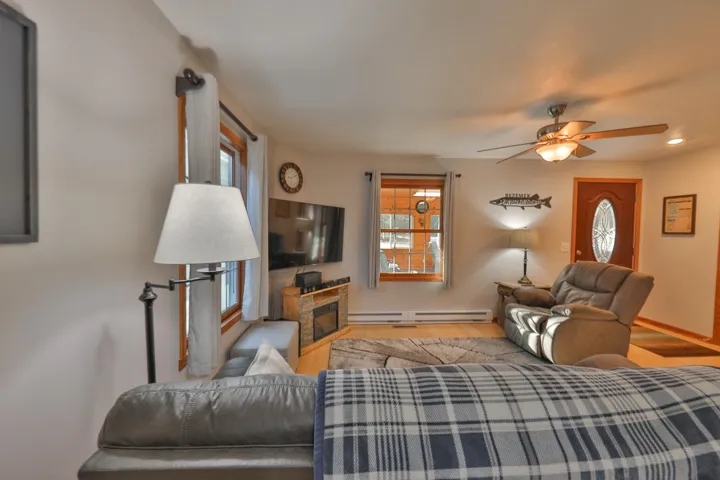 Charming custom-built contemporary home just ½ mile from Castle Rock Lake and steps from Northern Bay Golf Resort! Enjoy deeded access to a sandy beach, boat launch, and picnic area—perfect for year-round recreation. Nearly 1,500 sq ft with 4 bedrooms, 1 bath, and an airy open-concept layout featuring bamboo hardwood floors, granite countertops, and cathedral ceilings. Bright 3-season room and spiral staircase to upper-level bedrooms. Heated 24×40 insulated garage with loft for storage or finish potential. Peaceful wooded setting rich with wildlife, only 30 minutes from Wisconsin Dells. We’ll help you make every weekend feel like vacation.