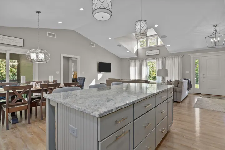 Privately located on a wooded 0.78-acre lot, this custom-built ranch Green Lake Home from 2017 offers 5 bedrooms and 3.5 baths with smart design, comfort, and flexibility throughout. Built for efficiency and easy upkeep, it includes high-quality mechanical systems and a low-maintenance exterior for lasting value. The main level features vaulted ceilings, tall windows, and an open layout with a custom kitchen, spacious primary suite, and a secondary suite. You can relax in the sunroom, on the back deck, or in the heated 3-car garage, which has a 12’ rear door for RV access and 220V power. The finished lower level adds three bedrooms, a full kitchen, and ample living space with in-floor radiant heat. Accommodates up to 13 people. A boat slip is available nearby on Big Green.