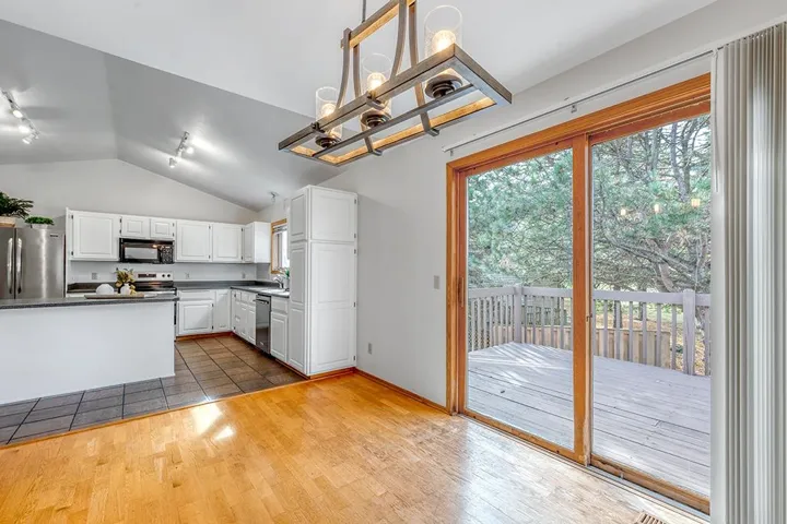 Live right on beautiful High Point Park in this bright, move-in-ready west side tri-level! With vaulted ceilings, oversized windows, and warm hardwoods throughout, this 3-bed, 2-bath home feels spacious and inviting. The kitchen shines with abundant cabinetry, a large island, and a new stove. Cozy up this winter in the den by the wood-burning fireplace. Enjoy peaceful park views from your dining area or deck—no backyard neighbors! This one is ready for winter – HOA dues includes snow removal for the driveway. Updated 200 amp service and new EV charger. Minutes to shops, restaurants, and everything west Madison offers.