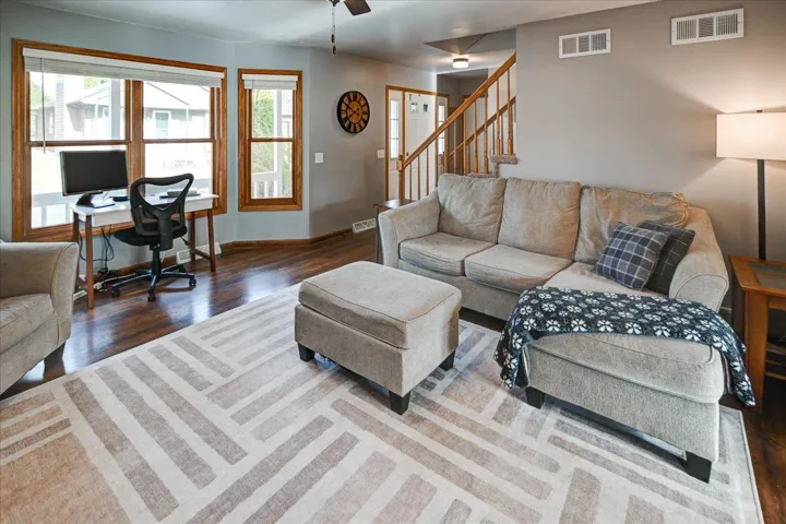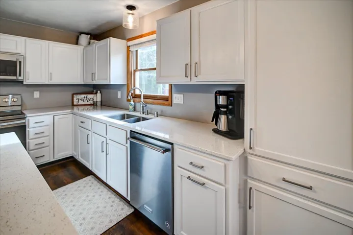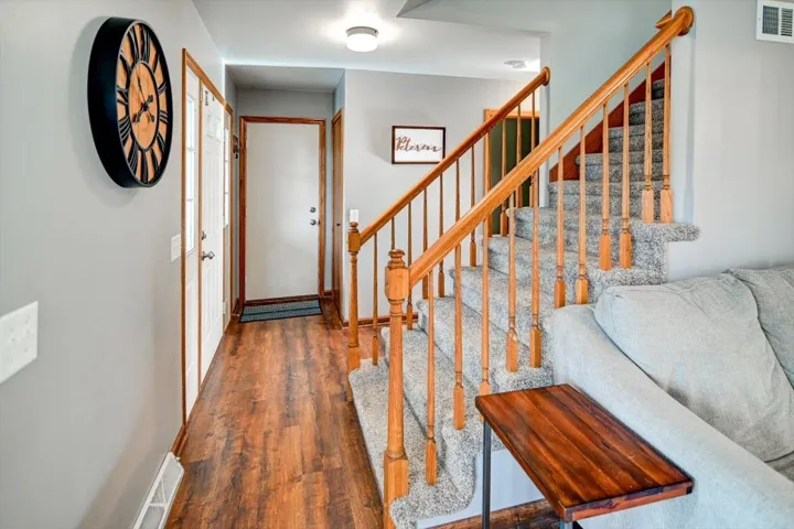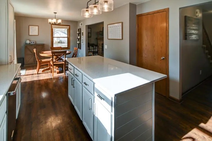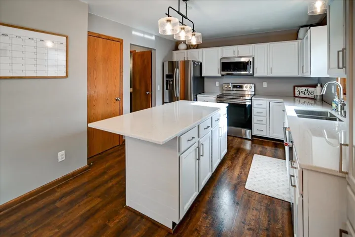 Move in before the holidays!! Bright and sparkling clean, this home is ready to call yours, with many recent updates. New lighting throughout, kitchen featuring quartz counter tops, white cabinets, and stainless appliances. Pretty half bath on main level for convenience and guests. Cozy wood fireplace in living room, with open staircase to upper level. Primary suite offers private bath and dual closets, two additional bedrooms and full bath with tub. All new chair height toilets. Quality, new blinds. Lower level has family room, laundry with new washer and dryer included. Lots of storage too!! This home is close to parks, shopping and 9 minutes to Epic. The HOA plows the cul-du-sac and sidewalks, annual fee is $385.00.- UHP Ultimate Warranty is included.