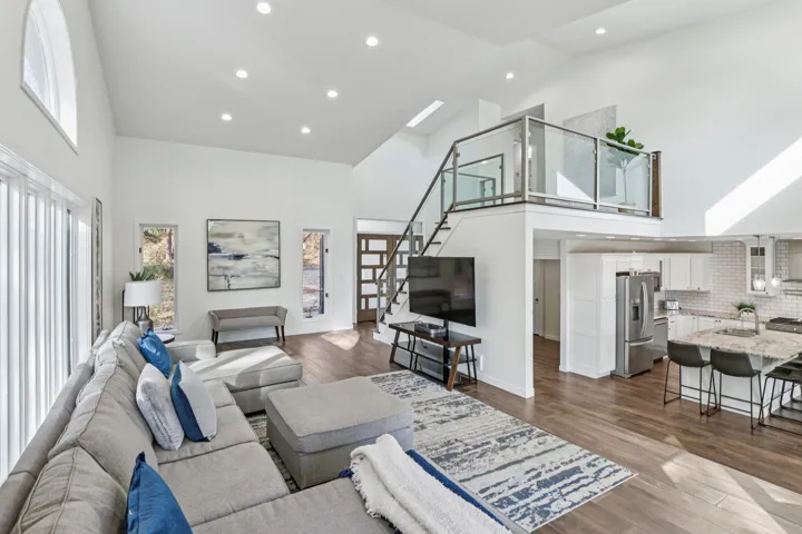 Executive home on the Wisconsin River – Fully remodeled within the past six years, this executive home on the Wisconsin River blends modern comfort, light, and nature. Enjoy panoramic river views from the open living, dining, and kitchen area with large windows and skylights. Features include a maintenance-free full-length deck, expansive patio, floating boat dock, boathouse, two full bedroom suites with walk-in showers and closets, plus adjoining offices. Two kitchens, two laundry rooms, and bright, open spaces make it ideal for remote work, multi-generational living, or a vacation rental. Just 5 min to Lake Wisconsin, Cascade Mountain & I-90, and 25 min to Wisconsin Dells.