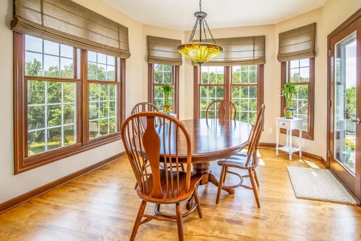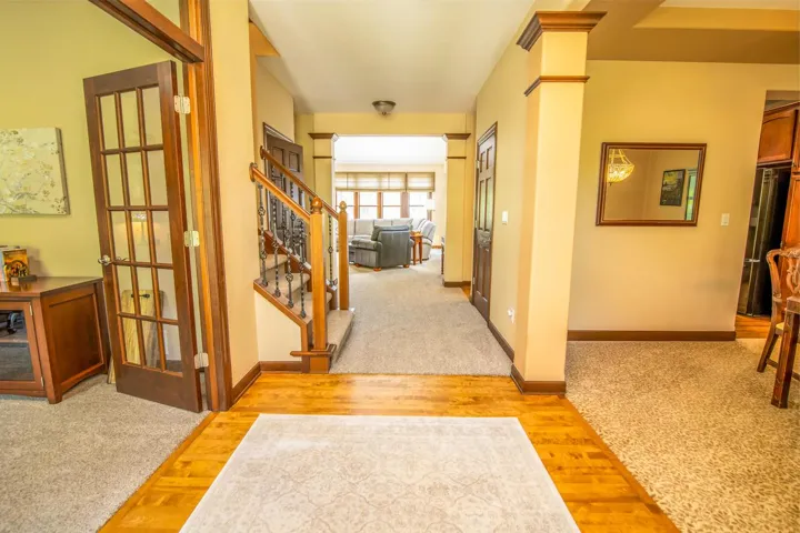 If paradise had an address it would be N7575 Doyle road! The peacefulness and tranquility of this property will absolutely mesmerize you. This stunning home which boasts 4,914 square feet is set on 8.19 acres and is a mix of a perfectly manicured lawn and woods with winding trails that lead to a creek. So many updates since the owners purchased it including the entire lower level with large bar and entertaining space, huge gathering area for fun and games, additional rooms, theatre room, and so much more! Walkout stamped concrete patio from the lower level and composite deck off the main level and so much more. Incredible master suite with large master bath and walk-in closet. Vaulted ceilings in the main living room and chefs kitchen. Just 5 short minutes and from Hwy 41, Horses Allowed