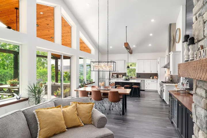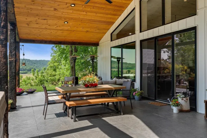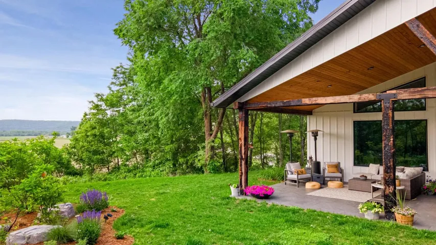 Prepare to be inspired and enjoy a more peaceful life in a magnificent home! This custom designed home is tucked into a private 5.0 acre wooded lot and the location just happens to lie in one of the most beautiful valleys in the Driftless area! The house was built in 2024 featuring ICF construction, high ceilings throughout and spacious living areas with customized features in every room. The kitchen and dining areas will be hard to compare under a 17′ vaulted ceiling and an impressive wall of premium windows filling the room with an abundance of natural light. Relax by the Renaissance wood burning fireplace, or entertain on the covered patio area with expansive views. The 10×12 storage shed and 24×36 shop provide additional storage, plus a parking area for a camper or boat as well!